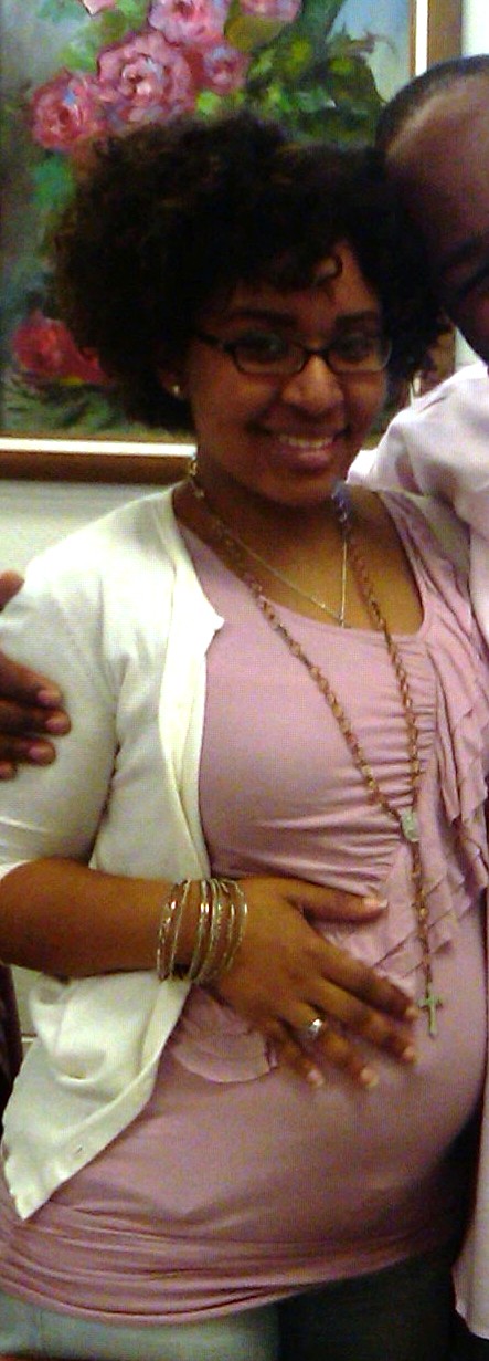 My most recent picture, taken by my boss at work. I’ve got a big belly and big hair!