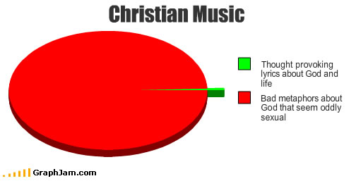 … Some one could invent Christian night club music to make it safe for the Christian teens to go out dancing while still respecting the Lord. In fact, a truly subversive musician who can’t cut it in the secular music industry could easily make millions of dollars by feigning a Christian message over top their otherwise secular music, simply because they would receive no criticism. Instant Fame: Just add Jesus.”
